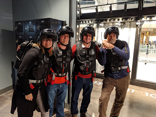 Evan leads Barr’s Computational Hydrogeology Practice Group and Barr’s Innovation Program. Here, Evan is exploring cutting-edge virtual reality with fellow Barr hydrogeologists (from left) Sheryl Filby Williams, John Greer, and Ray Wuolo.