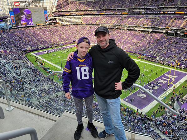 The Kubiak household bleeds purple and gold for their beloved Minnesota Vikings. In 2022, John and his son Luke attended a game at U.S. Bank Stadium.