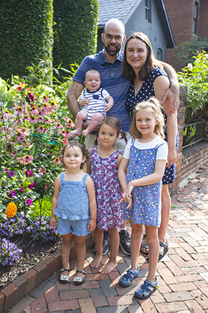 Away from work, four young children keep Adam and his wife Ellen sufficiently busy.