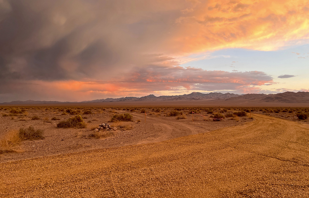 A summer storm rolls in on a lithium mining site in the western U.S.