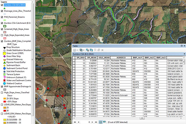 Barr's work on the Zumbro River Watershed Restoration Prioritization project included a GIS database complete with a prioritized list of upland and near-channel critical source areas and associated BMP recommendations for each site.