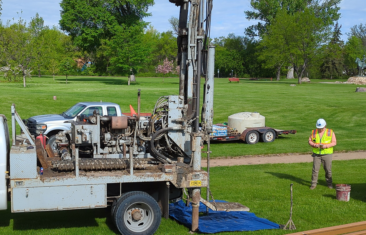 As a water resources intern, Quinn Ackerman has worked on several projects, including dam removals, hydrologic studies, flood protection, and erosion control management. Here, he works on soil borings for the Mouse River enhanced flood protection project in Minot, North Dakota.